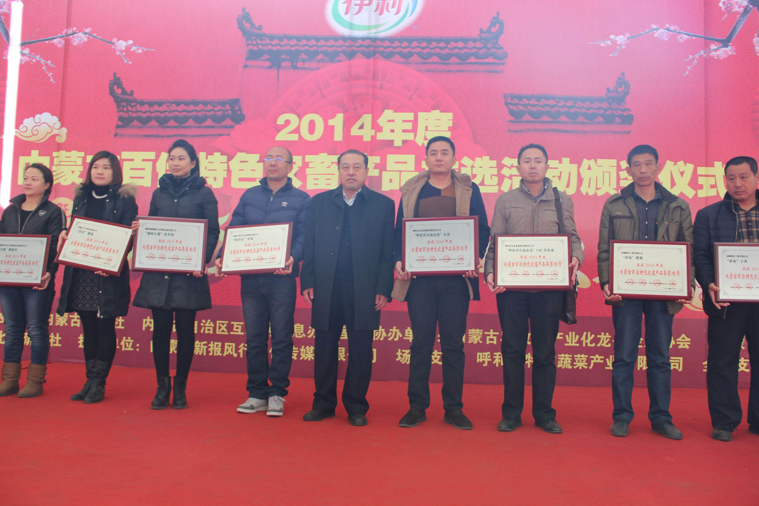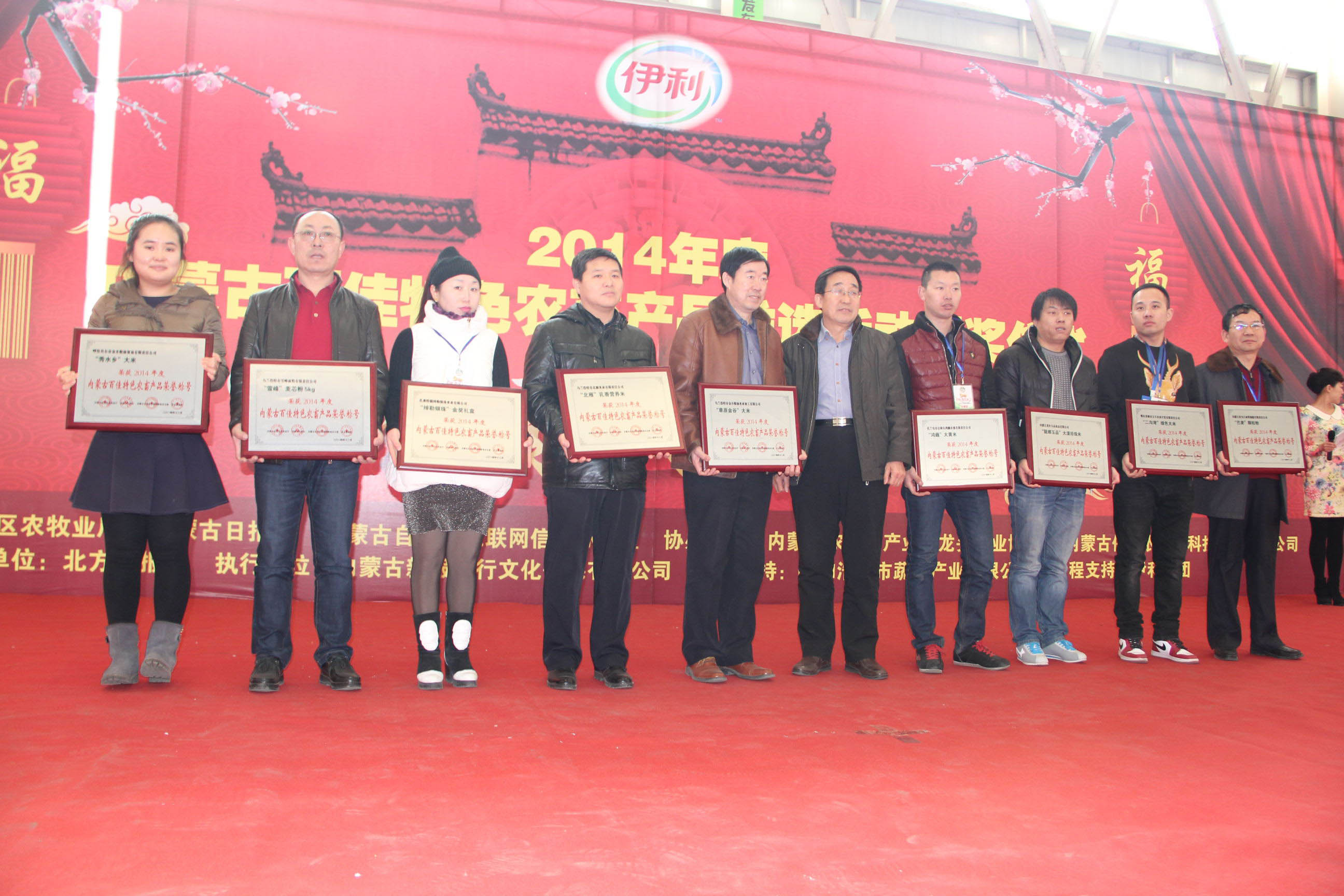 26日,由自治區(qū)農(nóng)牧業(yè)廳、內(nèi)蒙古日?qǐng)?bào)社、自治區(qū)網(wǎng)信辦主辦,內(nèi)蒙古農(nóng)牧業(yè)產(chǎn)業(yè)化龍頭企業(yè)協(xié)會(huì)、內(nèi)蒙古保全農(nóng)產(chǎn)品科技發(fā)展有限公司協(xié)辦,北方新報(bào)承辦的“內(nèi)蒙古百佳特色農(nóng)畜產(chǎn)品”推選活動(dòng)頒獎(jiǎng)儀式暨2015“青城年貨大集”在呼和浩特市保全莊農(nóng)貿(mào)市場(chǎng)2號(hào)廳正式開(kāi)幕。自治區(qū)農(nóng)牧業(yè)廳副廳長(zhǎng)賈躍峰、內(nèi)蒙古日?qǐng)?bào)社黨委委員、副總編輯孫亞輝、內(nèi)蒙古農(nóng)牧業(yè)廳產(chǎn)業(yè)化處處長(zhǎng)王補(bǔ)在、北方新報(bào)社總編輯李德斌、內(nèi)蒙古農(nóng)牧業(yè)產(chǎn)業(yè)化龍頭企業(yè)協(xié)會(huì)執(zhí)行會(huì)長(zhǎng)林永亮等出席頒獎(jiǎng)儀式,賈躍峰副廳長(zhǎng)在頒獎(jiǎng)儀式上致辭。此次評(píng)選活動(dòng)共112家農(nóng)牧業(yè)企業(yè)的120件產(chǎn)品被評(píng)選為“內(nèi)蒙古百佳特色農(nóng)畜產(chǎn)品”。獲獎(jiǎng)企業(yè)參加了此次2015“青城年貨大集”,展出了糧油、畜、禽、魚(yú)、蛋、奶、蔬菜、水果等多種特色產(chǎn)品,是首府春節(jié)前夕的一次大型展示、展銷、采購(gòu)活動(dòng)。