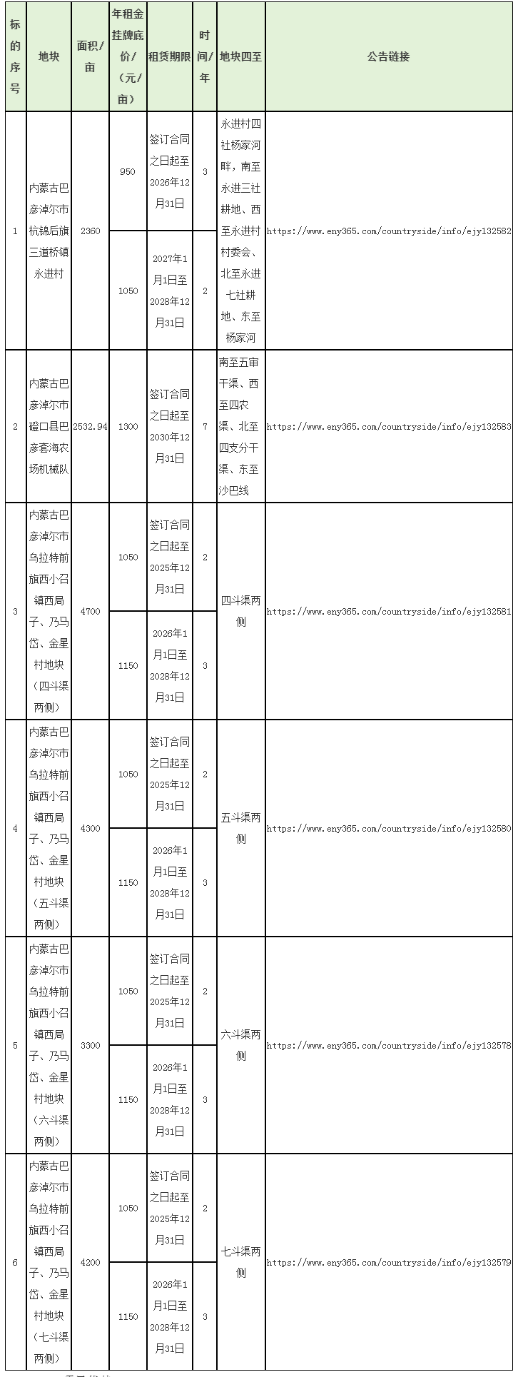 巴彥淖爾市農(nóng)墾(集團)有限公司6宗耕地出租