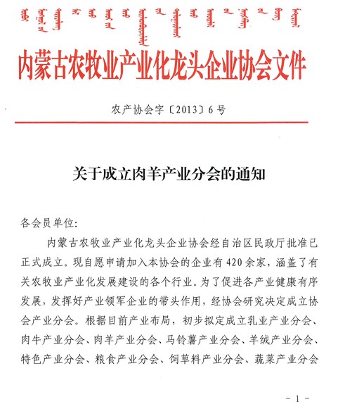 關(guān)于成立肉羊產(chǎn)業(yè)分會的通知